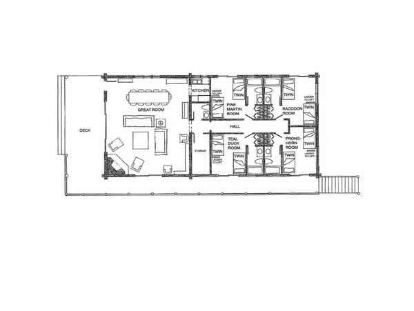 Raccoon Room: The perfect room for a family, this two story room has an attached bathroom with jetted tub, a king bed on the lower lever one full bed in the second floor loft, sliding doors to an outside porch.