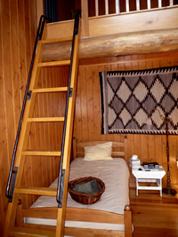 Pine Martin Room: The perfect room for a family, this two story room has an attached bathroom with jetted tub, two twin beds on the lower lever, one full bed in the second floor loft, sliding doors to an outside porch.